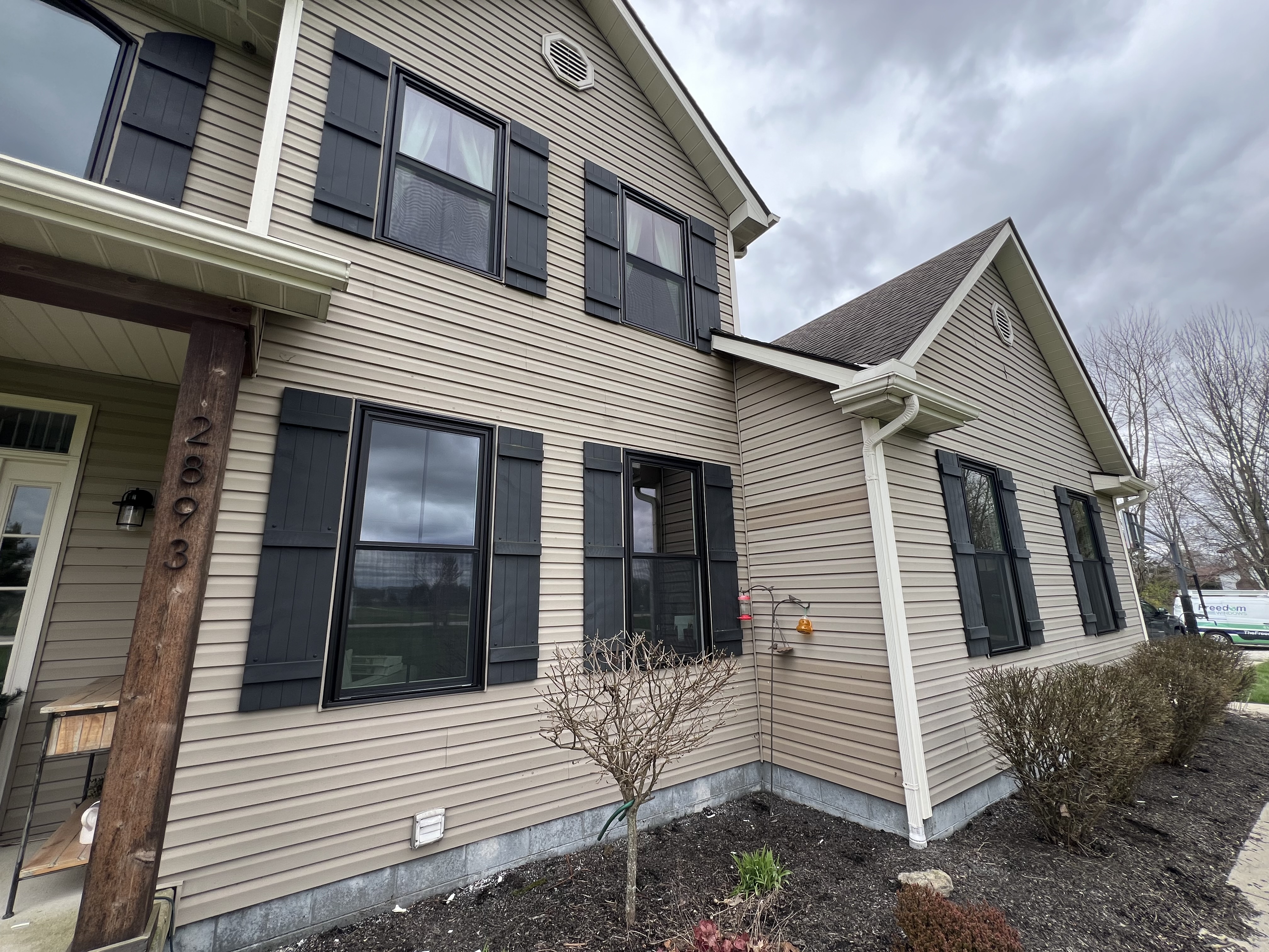 We installed premium windows with a striking black exterior finish that creates dramatic pop against the home's facade, paired with a fresh, clean white interior for a bright and timeless feel from inside.